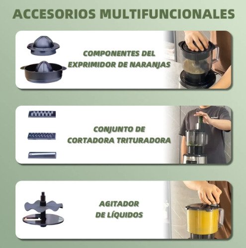 La Licuadora y Procesador de Alimentos 6 en 1 Moledor es la solución ideal para quienes buscan versatilidad y potencia en la cocina. Con una capacidad total de 3 litros y una impresionante potencia de 9500 W, este equipo permite realizar múltiples tareas, desde licuados hasta el procesamiento de alimentos y molido, todo en un solo dispositivo.