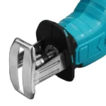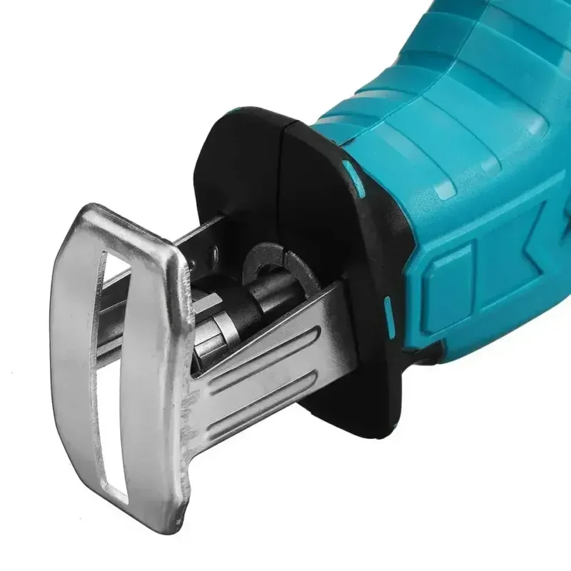 Esta sierra sable eléctrica color azul turquesa viene completa en su maletín resistente con todo lo que necesitas para trabajar. Incluye la herramienta principal, batería recargable, cargador y hojas de repuesto.