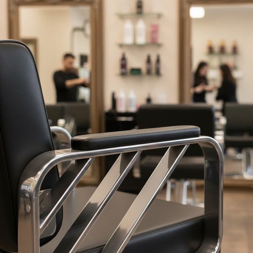 El apoya pies integrado añade un nivel extra de confort, ideal para largas jornadas laborales. Esta silla no solo es una herramienta de trabajo, sino también un elemento que contribuye a la estética del salón, combinando funcionalidad y diseño en un solo producto.