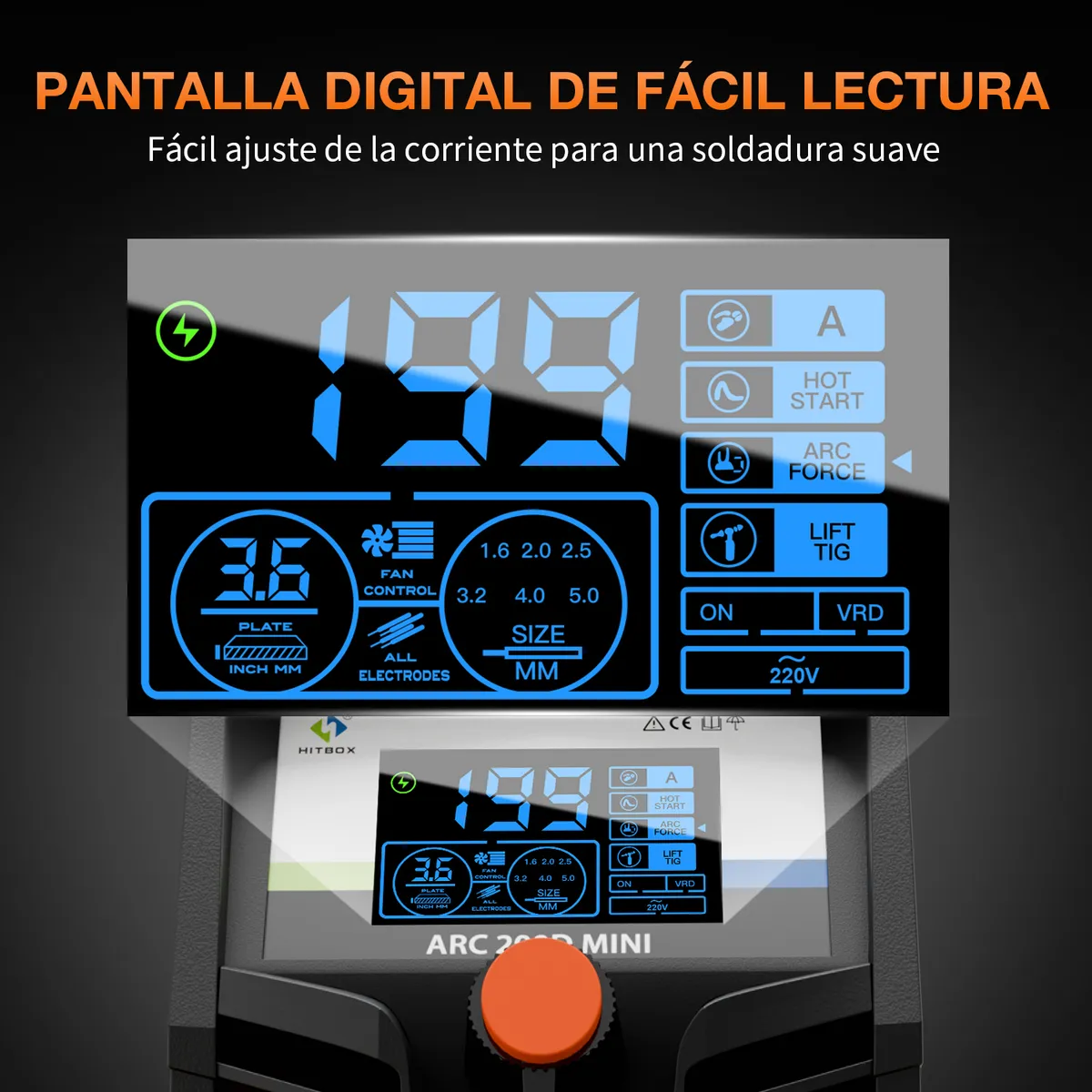- Pantalla digital para controlar la corriente con precisión
