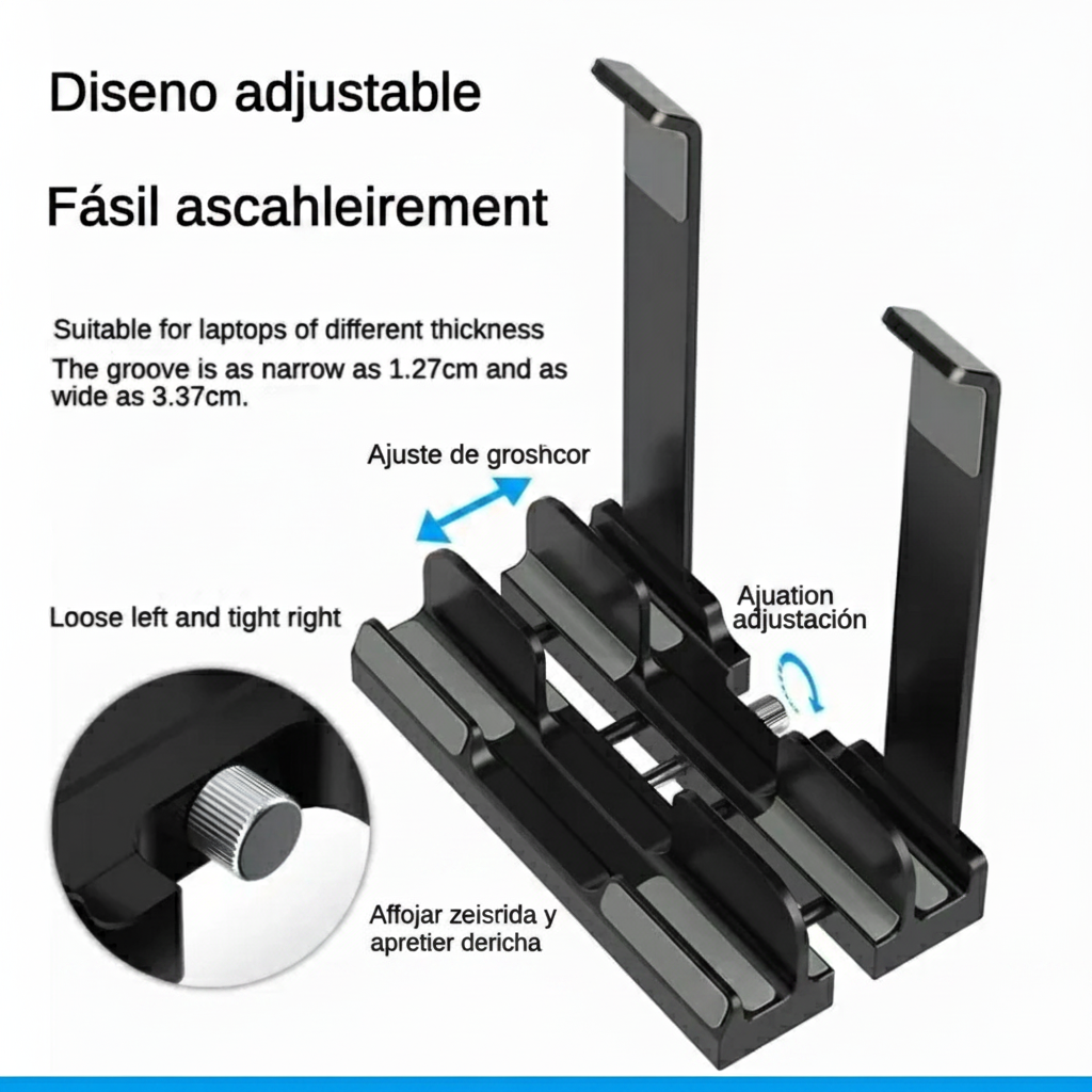 Soporte doble para laptop de aluminio con almacenamiento