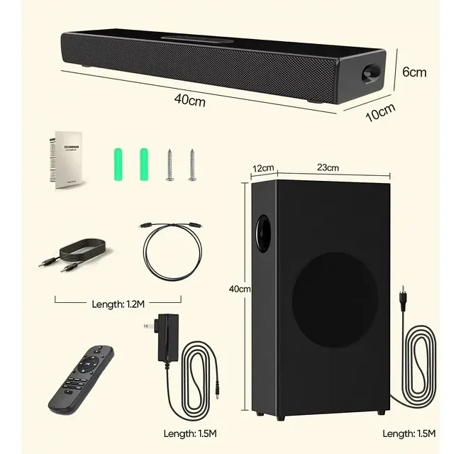 Barra de Sonido 120W Bluetooth 5.0 Altavoz Sistema TV y Cine
