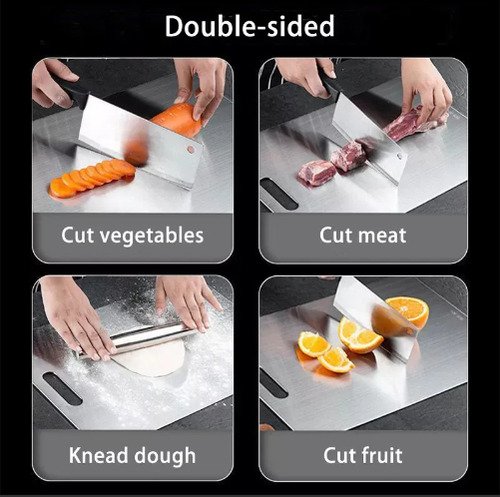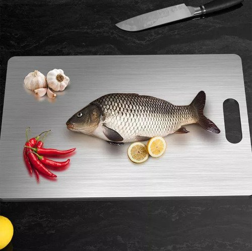 Fabricada en acero inoxidable, esta tabla no solo es elegante, sino también altamente resistente a la corrosión y fácil de limpiar. Es apta para lavavajillas, lo que facilita su mantenimiento y asegura una higiene óptima en la preparación de alimentos. Además, su superficie antideslizante garantiza estabilidad durante el uso, evitando accidentes en la cocina.