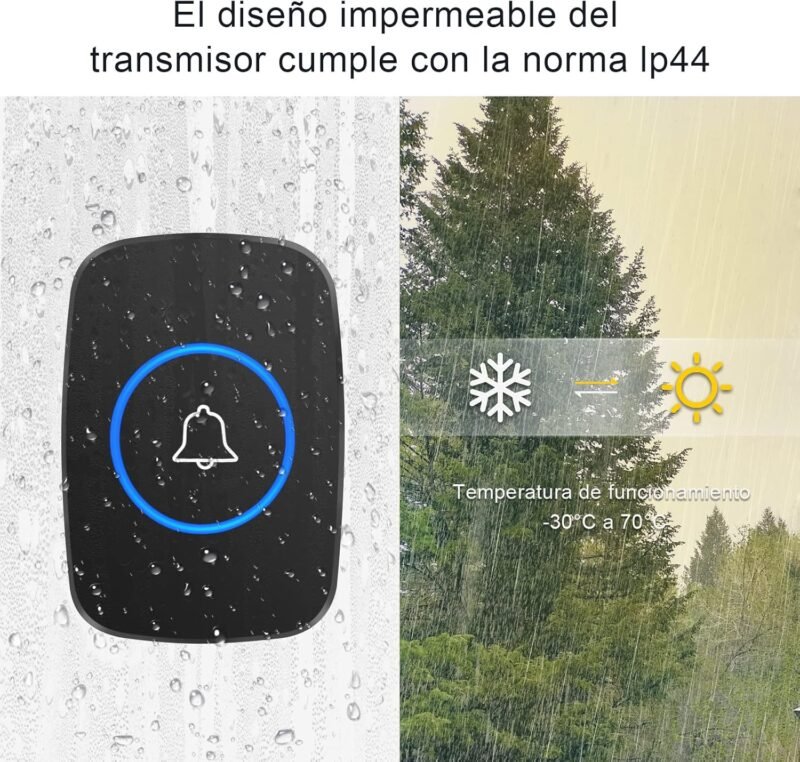 - Botón exterior resistente al agua – aguanta lluvia y sol