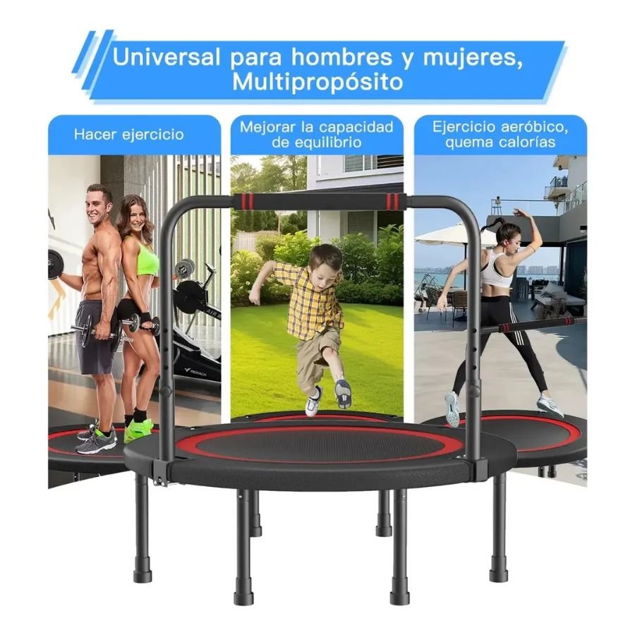 Tiene una barra estabilizadora ajustable que te da seguridad mientras saltas, ideal si estás empezando o si quieres entrenar con más confianza. Además es plegable, así que no ocupa mucho espacio cuando no la usas.