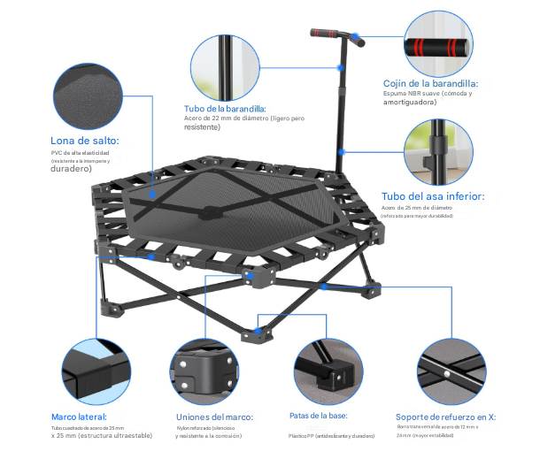 La barra de apoyo es ideal si estas comenzando o si buscas mayor seguridad durante tus rutinas. Una opcion practica, funcional y de buena calidad para mantenerte activo sin salir de casa.