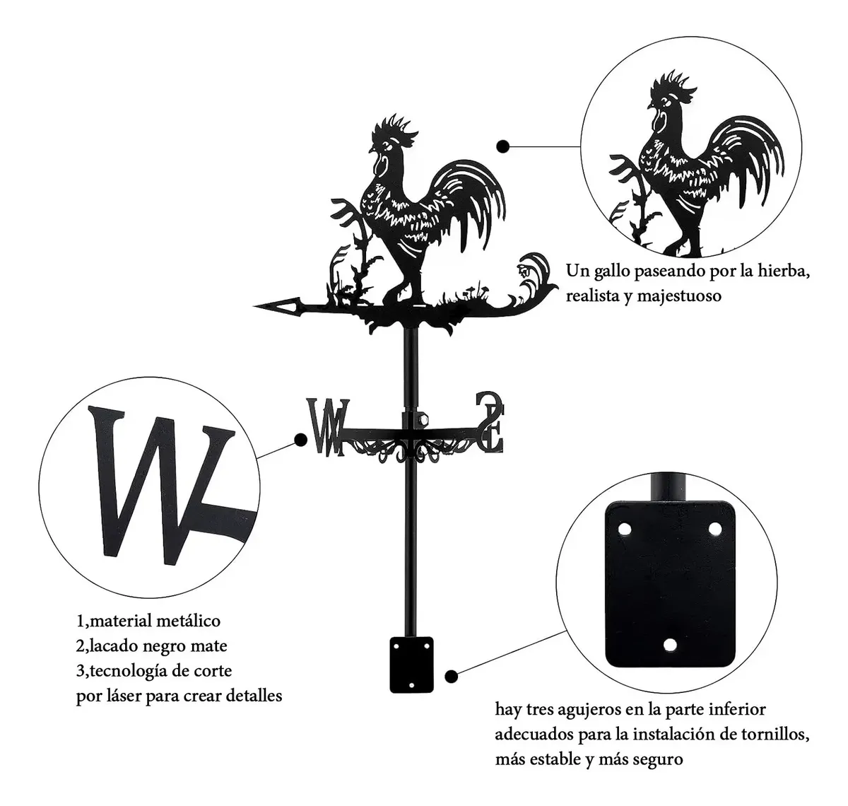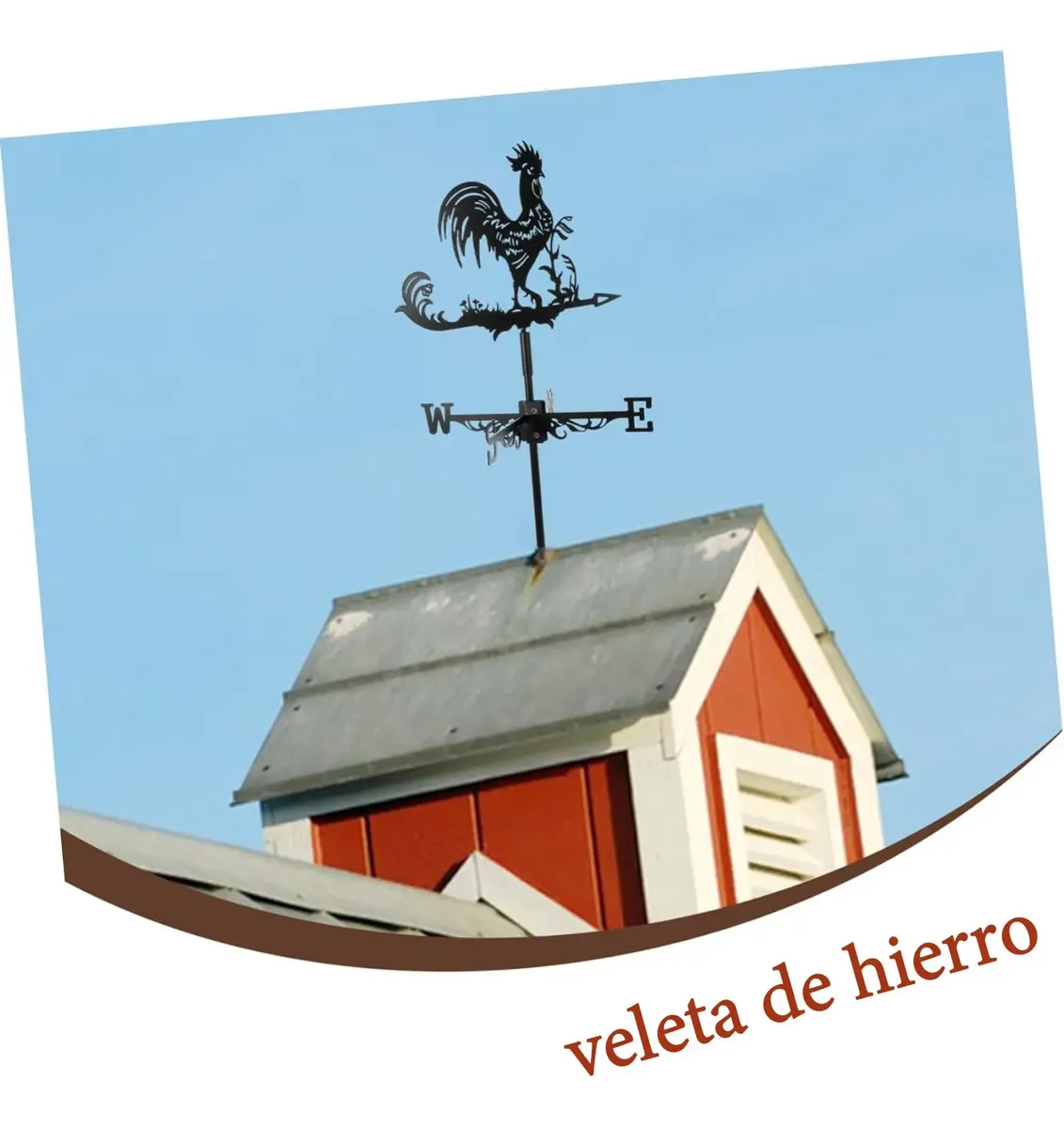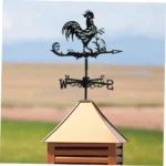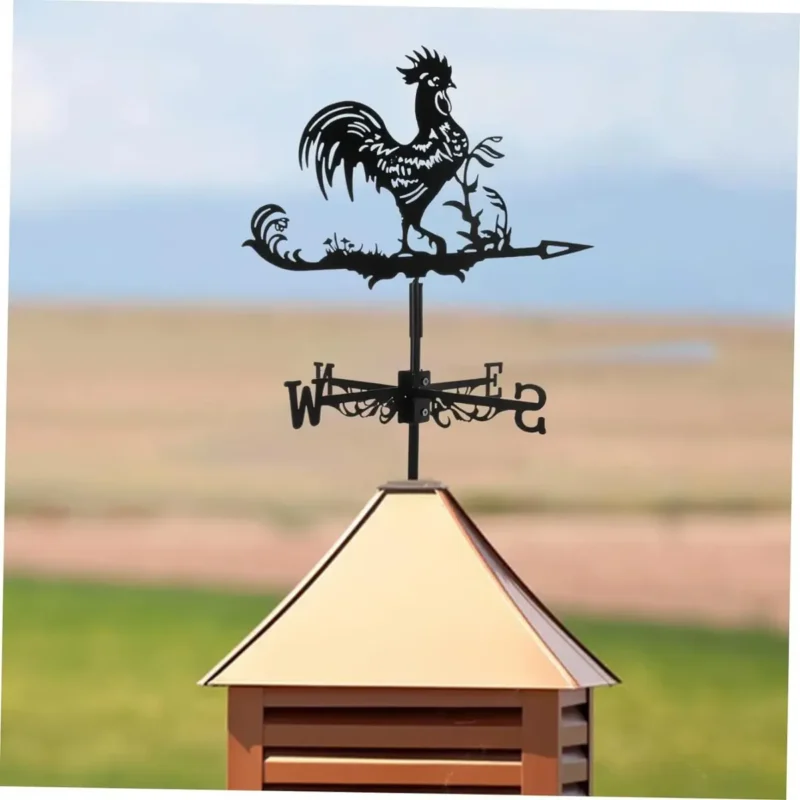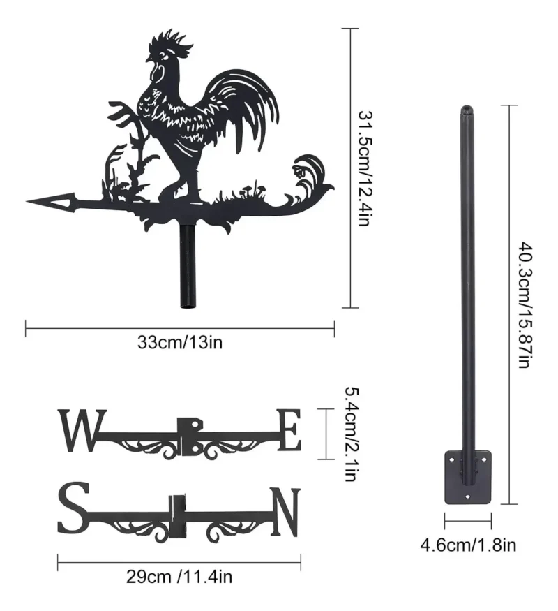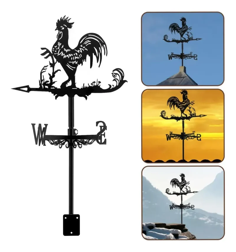 Dale un toque clásico y encantador a tu jardín o terraza con esta veleta decorativa en forma de gallo, fabricada en metal resistente y con un acabado negro elegante que combina con cualquier espacio al aire libre.